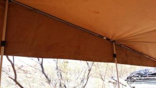 large awning encloses kitchen – 2x side walls, kitchen infill & draft