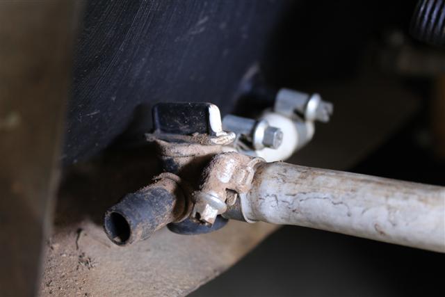 grade 12mm hosing & then the tap, both secured by hose clamps. The T